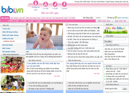 BIBI 网站与其他婴幼儿网站模式一样,提供宝宝健康、科学膳食、母亲经验、宝宝画廊、儿童成长图表,在越南国内以播放相关的节目而闻名,提供电视节目的回顾,节目时间表,节目内容预告,同时提供育婴的一些知识等。