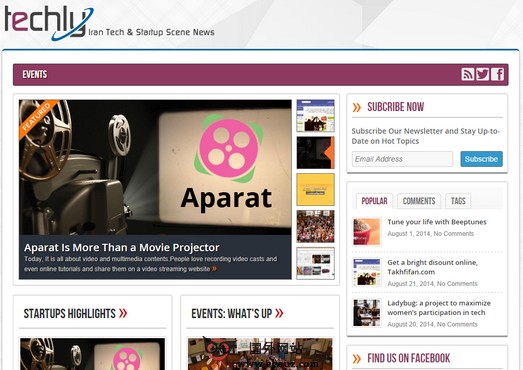 Techly.co:伊朗科技产业新闻网是由伊朗Nasser Ghanemzadeh和Mobin Ranjbar两位创始人联合创办的的纯英文新闻博客网站,类似于TechCrunch的全英文科技博客,它成立的目的是为了报道伊朗的新兴科技产业发展。