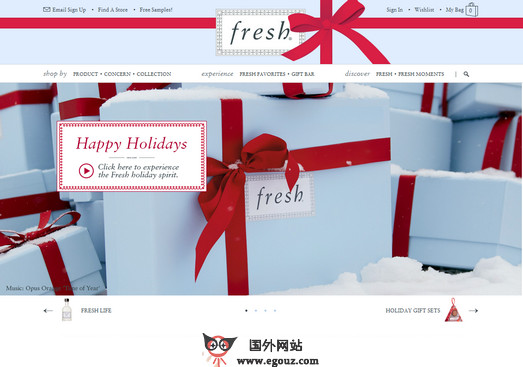 Fresh:法国馥蕾诗护肤品牌是法国LVMH集团旗下的高端护肤品牌,Fresh因独特的新旧融合,在业界自成一格,并反映在怀旧包装与恬静色彩中,渗透一份摩登的简约美学。