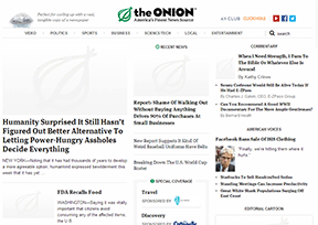《洋葱报》(The Onion,洋葱新闻)是以讽刺新闻著称的新闻机构,拥有报纸、网站、广播、等产品,成立于1988年,总部位于美国芝加哥。《洋葱报》模仿传统新闻的特点,以“正式”的口吻发布讽刺性的文章。