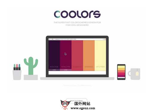 Coolors:在线快速配色生成工具是一个可以让你简单、快速的选色生成工具,为你找出配色的灵感,该网站是超快速为你生成配色,每次会为你挑选由五种颜色组合而成的调色盘,并显示颜色的代码,使用者可以快速选取使用,或是锁定其中的几种颜色。