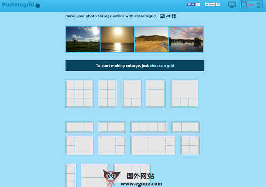 PastetoGrid:在线照片拼图工具是一个在线版的图片拼图制作工具,用户无需安装任何插件即可直接选择拼图样式上传图片即可完成在线拼图,该网站拥有16种不同拼图样式供用户选择。