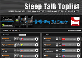 梦话录音(Sleep Talk Recorder)是一个分享亲友梦话录音的网站,这里有来自世界各地的梦话,这些大都是亲朋好友的恶作剧,你可以在线听这些录音,也可以将他们分享到社交网站上。网站也提供移动设备应用下载,方便您随时透露亲友的录音并上传。快去听听老外们梦话都说些什么吧。