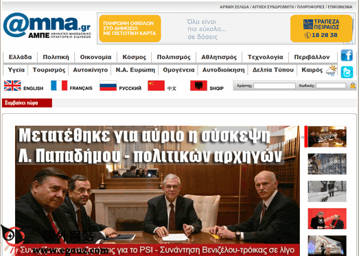 Amna:希腊雅典通讯社是希腊半官方性质 的通讯社新闻站点,成立于1896年;提供希腊政治、、经济、、等各类新闻源。