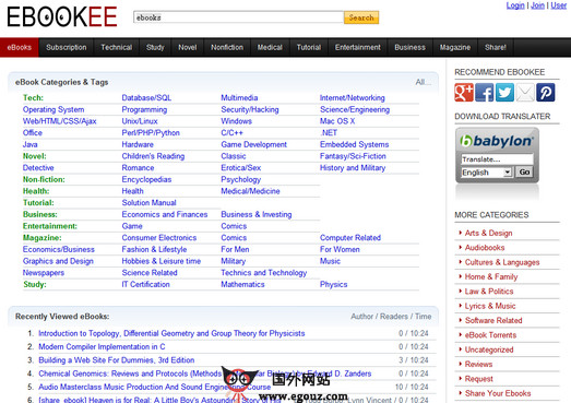 Ebookee:免费电子图书下载是一个基于互联网的提供免费的电子图书下载搜索的网站,该网站的上电子书涵盖广泛,任何种类的电子书你都可以在这里找到和下载。