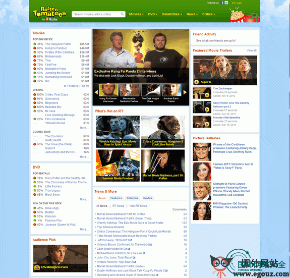 烂番茄网(rottentomatoes.com)是全球著名的影评集成网站,创建于1998年,总部设在美国的布雷斯班,来自全球最新上映的电影都将接受严苛的考验,以决定它究竟享受“好番茄”的命运,还是面临残酷的“烂番茄”结局。