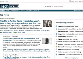 科技博客聚合网(Techmeme)是美国著名的科技新闻博客网站,类似于中国的鲜果网和抓虾网,其前身是于2005年9月创建的memeOrandum。跟一样,Techmeme授予不同新闻不同的权重,通过追踪博客和新闻的url链接来挖掘博客之间的对话线索,是一个十分有效的内容过滤器。