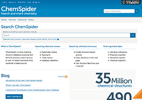 ChemSpider是一个在线化学数据库,2007年开始试运行,2008年3月正式发布,总部位于美国北卡罗来纳州罗利,该数据库记录了超过3500万的分子,从美国食品药品监督管理局、京都基因与基因组百科全书等490个来源获取数据。(数据截止2015年9月)