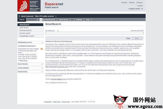 Espacenet:欧洲专利局数据库提供90余个国家和组织的专利信息,英语、德语、法语界面。帮助你了解世界专利的最新情况,以及查询已有的专利信息。