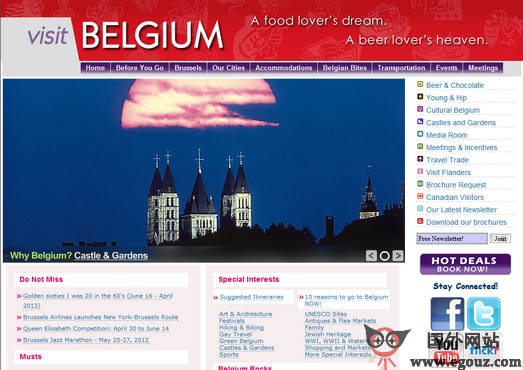 Visit Belgium:比利时旅游局官方网站是比利时对外宣传国内旅游景点和旅行宣传信息的门户站点,是了解比利时国内特色美食、旅游景点、生活方式、城市气息等。
