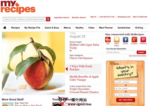 MyRecipes网站隶属于美国时代华纳公司(Time Warner Inc.)旗下,所有的菜谱主要来自于同样属于时代华纳公司的《烹饪之光(Cooking Light)》等知名美食杂志,想要品尝到正宗的国外美食,这个网站必看。