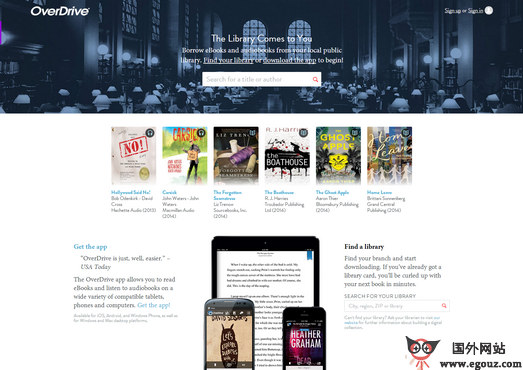 OverDrive:在线电子书籍搜索平台是美国的一家提供电子书、有声读物、音乐与视频等下载资源的数字化内容经销商,成立于1986年;该平台服务于全球1000多家出版社、15000多家图书馆、学校、专业学会、政府机构和零售商。