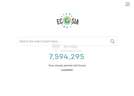 Ecosia 是一个基于Bing和Yahoo的绿色,因为搜索引擎背后是许多的高能耗服务器,用户每点击一次付费广告链接,他们就会将至少80%的剩余所得公益捐献,目前正关注植树,以支持他们拯救亚马逊雨林的工作。