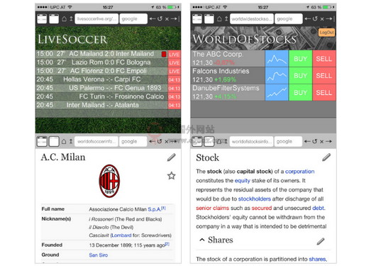 使用这款浏览器你可以一边看外文网站,一边开启Google 翻译或其它惯用的翻译网站,即可快速复制想要查询的单字进行翻译,也可以一边用浏览器查找需要的资讯,一边关心支持的队伍目前比赛的分数,全都任你使用。提供回到上下一页、重新整理以及停止载入的功能,也可选择将其中一个浏览视窗最大化,功能虽然简单但蛮实用的。