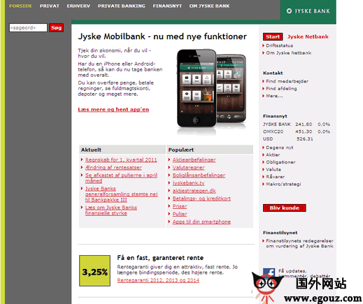 Yskebank.dk:丹麦日德兰银行(Jyske Bank)是丹麦第三大独立银行,1967年由日德兰半岛几家银行合并,总部位于锡尔克堡。