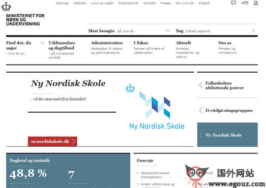 UVM.DK:丹麦教育部官方网站提供丹麦语和英语两种版本,内容包括教育部设置、教育体系介绍、教育新闻等。