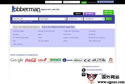 尼日利亚网络招聘站点,仅仅成立2年,就脱颖而出,目前尼日利亚国家网站排名第二名。Jobberman界面及其简单。