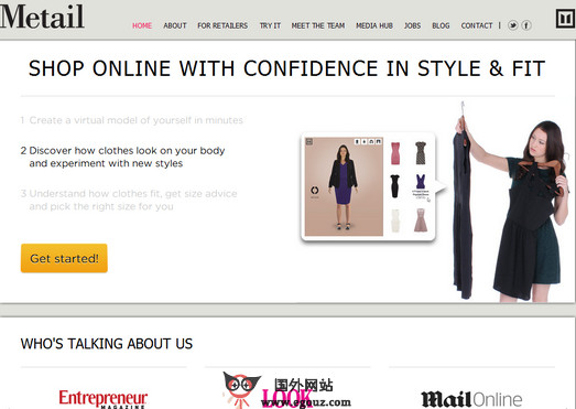 Metail:在线3D虚拟试衣购物平台是一个通过3D可视化技术为用户创建个人模特并在线虚拟试衣的服务,用以提供在线购买服装的成交量,保证用户能够在线购买合身的服装。