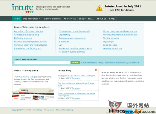 Intute 是一个免费、便捷、强劲的搜索工具,由英国高等教育资助理事会下的信息系统联合委员会JISC 和艺术与人文研究委员会AHRC 开发建立,专注于教学、研究方面的网络资源。所收录的信息资源都是经过行业专家选择和评审的,从而保证了其质量。目前数据库信息已达120060 条。