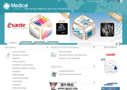 Medicalexpo:法国医疗器械采购平台是是全球最专业、最大的医疗器械及用品在线采购及展示平台之一,涵盖医学影像设备、放射治疗设备、手术工具、检查设备、急救用品、护理用品、急救药品、手术室用品、杀菌消毒设备、康复器械等。