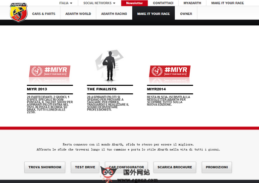 Abarth.IT:意大利阿巴斯汽车改装公司是意大利由改装起家,后来晋升为菲亚特御用改装的品牌,更将汽车设计由内之外地融入艺术之中,并赋予了热血的灵魂的汽车品牌。