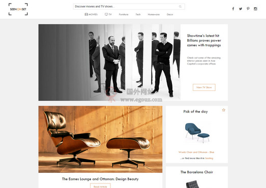 Seen on Set 平台一直着迷于荧屏上创意内饰,因此就创建了这个平台为广大喜欢电影和电视剧的用户提供这些家具和装饰效果,这里汇集了家具、装饰、照明、高科技、家居用品和艺术装饰效果,访问网站里的各种饰品是否很面熟呢?