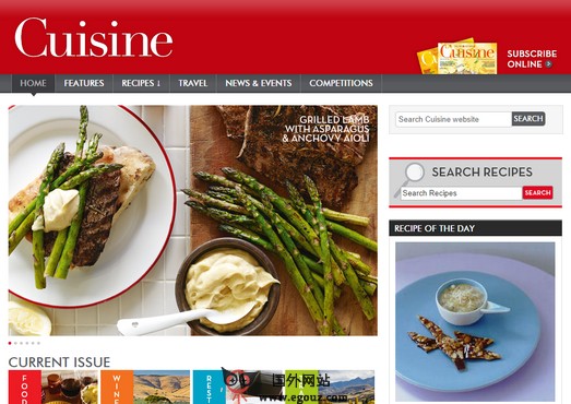 Cuisin:新西兰佳肴美食杂志是新西兰的知名美食杂志,通过介绍美食、酒类以及餐厅向读者传播最新的美食消息,该杂志的旅游板块还向读者推荐了旅行胜地的各类美食。