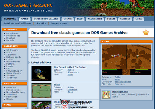 DosGame:经典DOS游戏大全是国外的一个收集和分享90年代出现的经典DOS游戏,目前收录了大约276种游戏,用户可以免费下载使用,如果你想要怀旧的话,不妨找找你喜欢的DOS游戏。