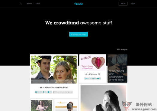 Pozible 是澳大利亚最大的众筹平台,也是世界上排名第三的众筹平台,前这个平台已经累计上线了6000个项目,筹得资金2000多万澳币,合人民币1.16亿元。用户来自全球104个国家,主要包括澳洲、新西兰、美国、德国等地的用户。