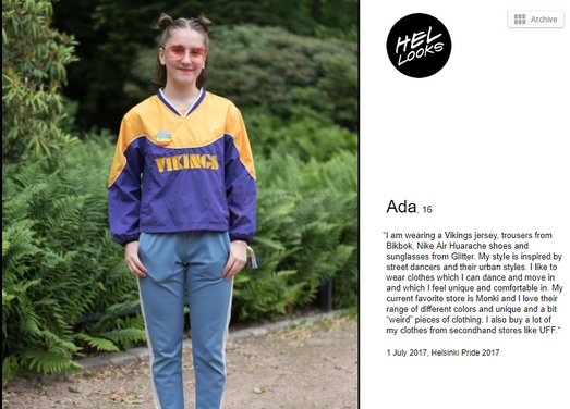 Hel Looks 是一个由Liisa Jokinen和Sampo Karjalainen于2005年创办的街头时尚博客网站,用手里的相机捕捉赫尔辛基街头最亮丽的风景线,拍摄街头穿着时尚前卫的人士,以展示人们对于时尚和潮流的独特魅力。