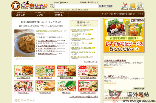 Cookpad,1997年10月由当时25岁的社长佐野阳光创立前身,1998年转型成现在这样的食谱检索网站格式,2009年7月上市。Cookpad的使命是希望用户每天都能在料理中得到乐趣,发自内心地得到快乐的笑容。