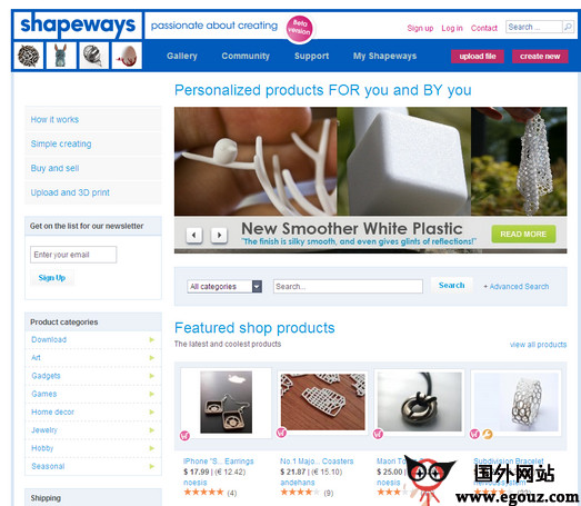 是一个集销售、定制、设计于一体的站点,这里你不仅可以购买还可以自己设计,同时还可以上传自己的设计作品来定制购买产品。