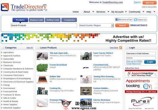 TradeDirectory:英国全球贸易B2B平台是英国知名的企业贸易名录库,提供全球企业业务推广平台,提供完全免费的企业B2B目录和产品库查询,提供贸易信息并显示制造商、批发商、国际供应采购信息,进出口信息等。