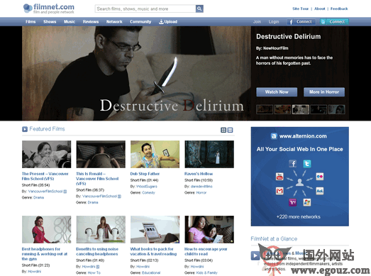 FilmNet提供了一个集视频制作、视频上传、视频分享的平台,网站针对音乐家、电影爱好者、教师、拍客、播客等人群,展示他们的优秀作品。Filmnet网站帮助电影制片人来发布、商业化他们的工作,以及寻找合作伙伴。