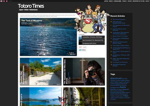 TotoroTimes:龙猫时报日本冒险摄影网是一个由法国人Jordy Meow的个人网站,出生于法国阿尔卡雄,在日本生活很多年,他的网站主要发布他在日本的摄影作品,探索日本城市及其世界各地的景点和一些神秘的地方。