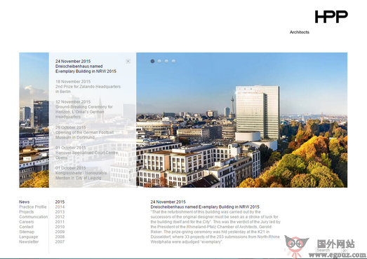 HPP Architects 是德国一家知名的建筑设计事务所,拥有数十年的历史,1933年,Helmut Hentrich 先生成立了一间小型建筑设计工作室,后发展成为合伙人制的建筑设计公司,在过去许多年里直到今天,公司所承接的业务都始终如一地贯彻着公司一贯的宗旨和精神。