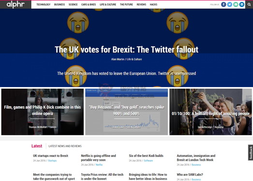 Alphr 网站主要栏目有技术、商业、科学、汽车与自行车、生活与文化、未来、评测等,通过该网站你可以了解到最新的手机技术、操作系统、智能硬件设备、最新的研究等等。