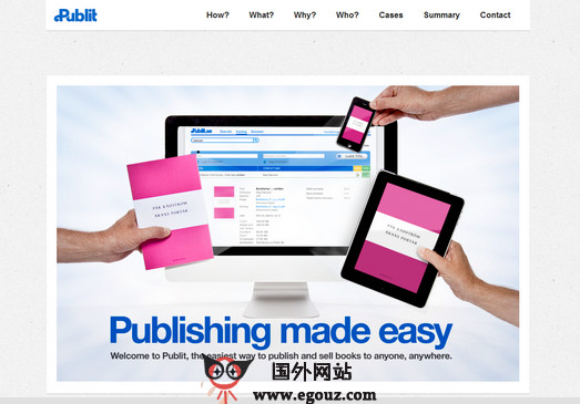 Publit:瑞典在线图书出版服务商是瑞典一家在图书出版行业很具革命性的创业公司,它的图书出版一站式服务只需图书出版商将图书上传,就能将书籍推送到各个渠道,揭掉了出版商和消费者间厚厚的膜。
