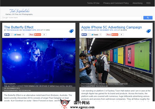 TedSzukalski:泰德数码摄影画廊是一位澳大利亚的摄影师创办的个人摄影作品展示网站,分享自己在摄影生涯中拍摄的各种摄影作品,主要包括悉尼建筑、人物肖像、时装、风景摄影等。
