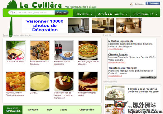 Lacuillere:法国美食菜谱分享网是法国知名的美食菜谱分享站点,提供非常丰富的法国风味美食,主要是法国家庭类美食和餐厅美食,让你足不出口即可制作法国美食。