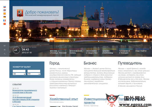 MosCow:莫斯科城市旅游国际站是介绍俄罗斯首都莫斯科旅游景点的国家性质网站,介绍莫斯科的人文地理、商业、政治、文化等综合信息。