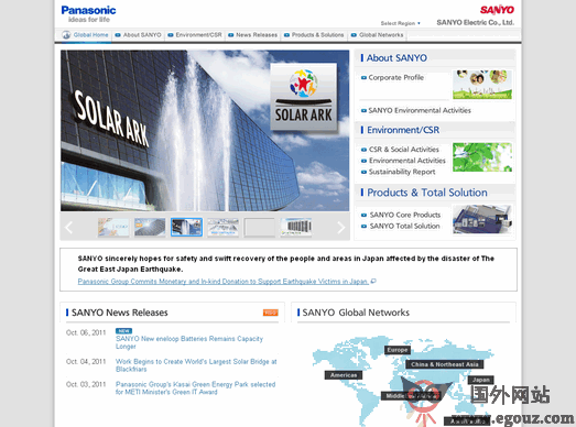 (Sanyo)成立于1950年。公司从摩电灯起步,至目前已涉及音响、信息通讯、家用电器、商用机械、电子部品、电池、生物制药等众多领域。
