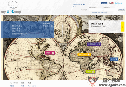 由于界本身就和其他的商品或专业市场有很大不同,所以My-ArtMap有其独特的优势,来访者可以通过Facebook或单独创建账户来登录平台。