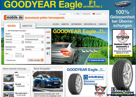 经估计该网站日访问量约63万人次,是德国访问量最大的汽车网站,有超过140万辆汽车在这个平台拍卖,包括摩托车、 卡车和汽车的新车、二手车等交易 。 在mobile.de上,还提供了德国最大的乘用车,商用车和摩托车。