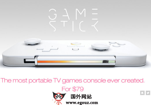 GameStick:超便携Android游戏主机官网是以Android系统为基础的游戏主机开发商官方网站,GameStick采用Amlogic双核处理器,处理性能不及OUYA的Tegra4核,但是价格非常低,只有79美元,非常适合家庭普及。