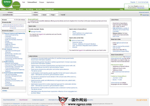 Elsevier是荷兰一家全球著名的学术期刊出版商,每年出版大量的学术图书和期刊,大部分期刊被SCI、SSCI、EI收录,是世界上公认的高品位学术期刊。近几年该公司将其出版的2,500多种期刊和11,000图书全部数字化,即ScienceDirect全文数据库,并通过网络提供服务。该数据库涉及众多学科:计算机科学、工程技术、能源科学、环境科学、材料科学、数学、物理、化学、天文学、医学、生命科学、商业、及经济管理、社会科学等。国内11所学术图书馆于2000年首批联合订购SDOS数据库中1998年以来的全文期刊。