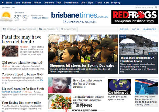 BrisbaneTimes:布里斯班时报是澳大利亚布里斯班市的媒体新闻报纸之一,提供本市实时新闻,体育运动新闻、商业投资、政治评论、科技娱乐、生活、旅游等多方面新闻报道。