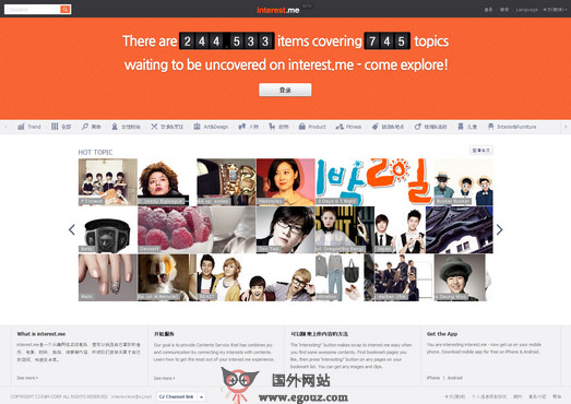 Interest.me是韩国新兴的互联网娱乐门户网站,支持智能手机,不管是你在何时何地,只要能上网就可以通过手机软件来获取该网站上最新的视频内容。