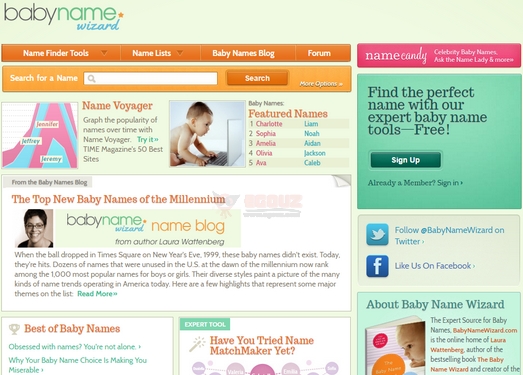 宝贝起名向导(Baby Name Wizard)是国外一家专门为孩子起名的英文网站,除了可以帮助宝宝起名外,还提供了家长们为孩子起名的取名趋势分析,数据从二战爆发后的30年到至今。