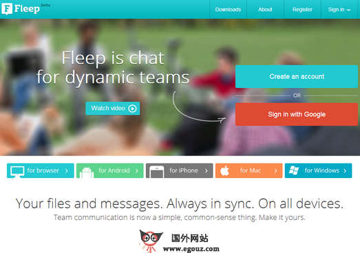 Fleep.io:实时团队协作聊天平台是一个集合了邮件和各种即时通讯/短信服务之间的差距不足的实时聊天工具,也可以说是 Skype、WhatsApp、HipChat 及电子邮件的混合体。有 web版和移动版。